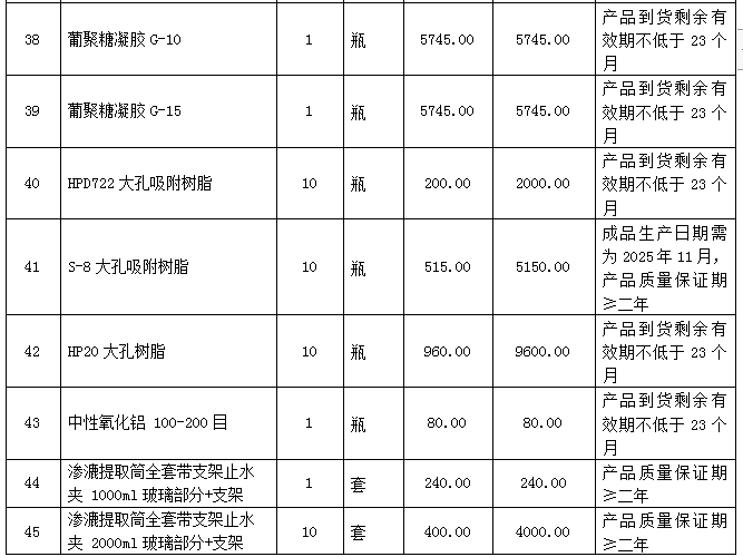 6.1采购内容:本项目包含一批实验耗材的采购、运输配送、安装调试、试运行、检验验收,项目完成期限、技术培训指导及售后服务等。