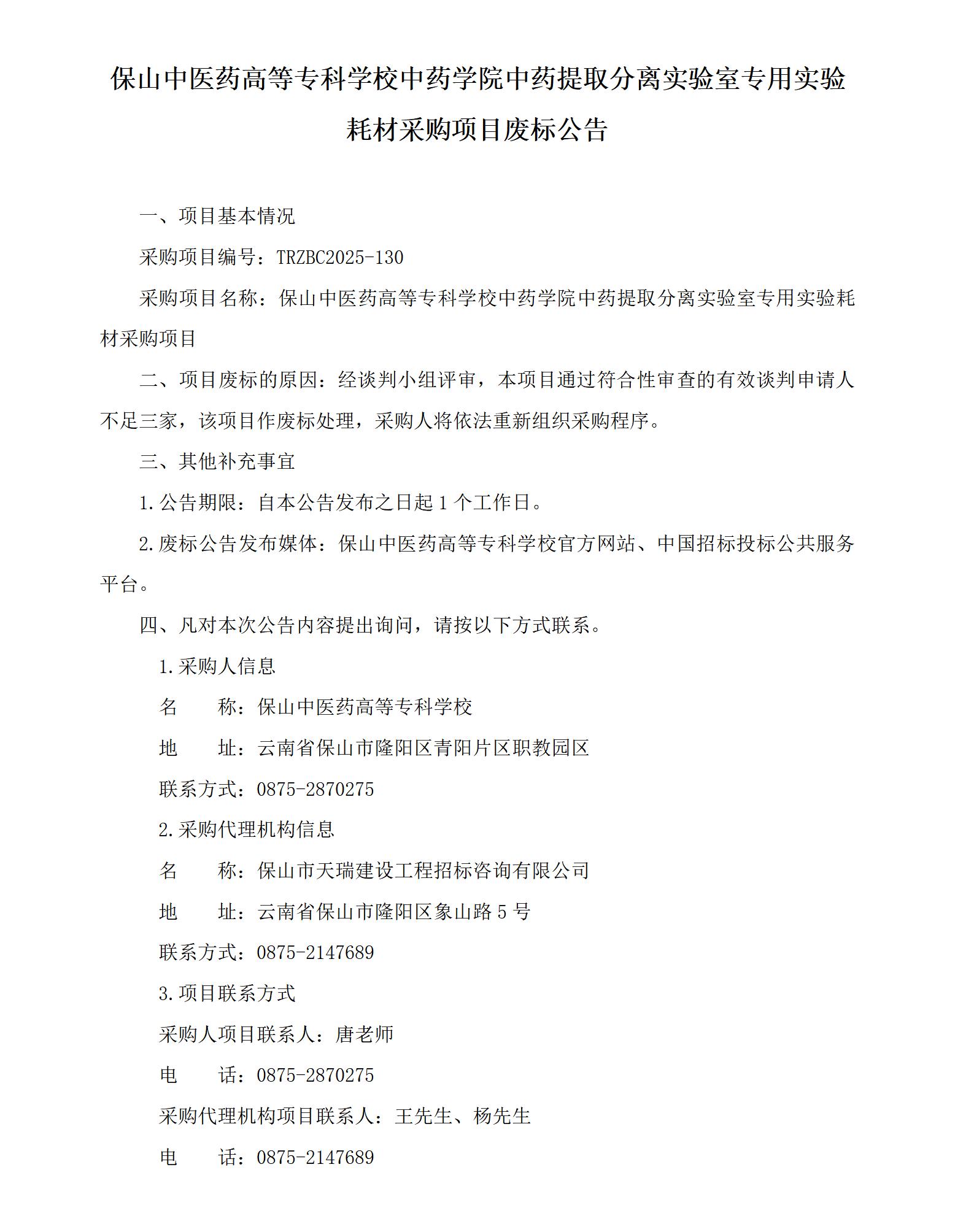 国际足联世界杯中药学院中药提取分离实验室专用实验耗材采购项目废标公告
