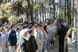到达松山干部教育培训基地后,首先开展了视频教学,全体师生认真观看了《松山战事》纪录片。并在解说员的带领下,前往松山大战遗址纪念园开展系列爱国主义现场教学——参观战争见证树;在中国远征军第八军103师阵亡将士公墓前举行缅怀仪式,进行悼念,敬献花篮,深切缅怀抗日英烈;参观松山战争遗址遗迹,瞻仰中国远征军雕塑群;听“方队故事”,了解革命先辈舍生忘死的英雄事迹……教学内容丰富多彩,是生动鲜活的爱国主义教育精彩一课。