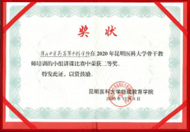 11月30日至12月4日,由昆明医科大学举办的“第七届骨干教师培训班”在昆明医科大学呈贡校区“国际交流中心”举行。世界杯官网杨波老师代表学校参加“骨干教师讲课比赛”并荣获二等奖。