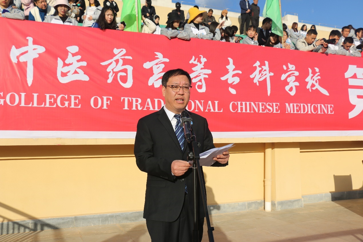 在庄严的升国旗仪式后,校党委书记黄鹤平致辞。他指出:2020年是具有里程碑意义的一年,是全面建成小康社会和全面打赢脱贫攻坚战,实现第一个百年奋斗目标之年。体育是提高人民健康水平的重要手段,也是实现中国梦的重要内容,能为中华民族伟大复兴提供凝心聚气的强大精神力量。一直以来,学校党委深入贯彻落实习近平总书记关于教育、体育的重要论述和全国教育大会精神,始终把学校体育工作摆在突出位置,不断深化改革创新,构建德智体美劳全面培养的教育体系,把学校体育工作作为实现立德树人根本任务、提升学生综合素质的基础性工程来推进。