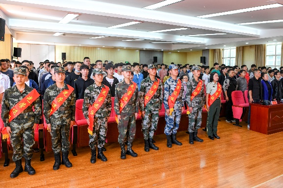 11月27日,保山中医专2020年退役士兵返校欢迎仪式暨2021年征兵工作动员会在图书馆报告厅召开。校党委书记黄鹤平,党委副书记杨朝丽,校党委委员、副校长李智辉,隆阳区武装部政委王峰等领导出席会议。