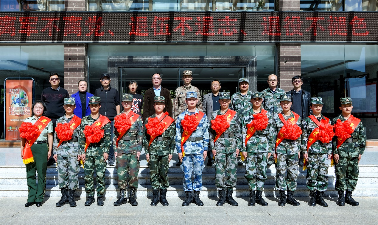 隆阳区武装部政委王峰祝贺战友从军归来、返校学习,为同学们的成长和升华感到骄傲;对学校贯彻落实让军人成为全社会尊崇职业的指导精神和武装有关工作表示敬意,让退役的战友感受到了家的温暖和关怀;向所有同学发出邀请到军营这个大家庭中书写青春华章。黄鹤平首先代表学校,对隆阳区人民武装部长期对学校武装工作的关心指导和支持表示衷心的感谢,对12名退役复学的同学能积极响应国家号召,献身国防的使命感和担当精神致以崇高敬意和热烈欢迎。希望同学们能时刻牢记军人的身份,始终按照军人的标准严格要求自己,自律、自强、积极进取,把部队的优良传统和过硬作风带到宿舍、班级、学校,成为同学当中关心国防、热爱国防、献身国防,争当新时代优秀的大学生的排头兵和模范榜样;希望退役复学同学坚定理想信念、厚植爱国报国情怀、努力学习增长本领、在加强品德修养上下功夫,谋求新的进步和提高!学校武装部及相关部门,要大力宣传国家的兵役制度和优抚、保障政策,让学生清楚退役复学、转专业、免试入读本科、就业保障等政策,切实把退役复学同学的权益维护好。