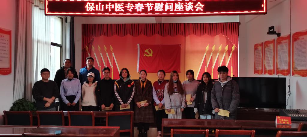 春节将至,年味渐浓,为巩固脱贫攻坚成果,确保结对帮扶贫困户温暖过冬、幸福过年,保山中医专党委及时研究制定春节慰问方案,安排驻村工作队于2月8日对挂包贫困村瓦马乡小水井村、山心村老党员、贫困户及大学生开展春节慰问活动。根据校党委的统一安排部署,本次慰问由驻村工作队采取集中慰问,分类座谈的方式进行。慰问中,驻村工作队员向村民转达了学校对大家的牵挂之情和新年的祝福,认真听取了村民对学校脱贫攻坚和乡村振兴相关工作的意见建议,并送上慰问品,将学校与挂包干部的深切关怀送到贫困户的心坎里。