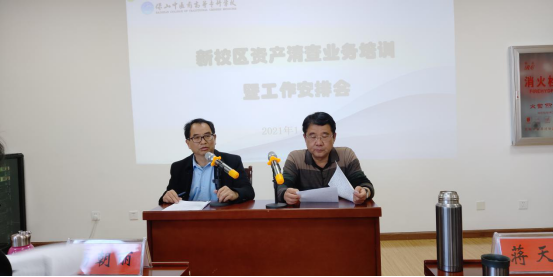 2021年1月5日,学校资产清查工作领导小组在行政服务中心三楼会议室组织召开了新校区资产清查业务培训暨工作安排会,会议由资产清查工作领导小组办公室主任杜士杰主持。