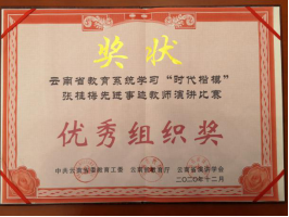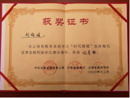 世界杯官网刘晓娟老师从复赛中脱颖而出,代表学校参加决赛,经过激烈的角逐,最终荣获“云南省学习时代楷模张桂梅先进事迹教师演讲比赛”优秀奖,学校荣获优秀组织奖。