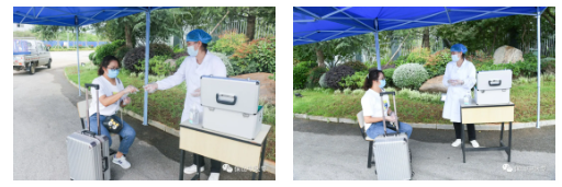 “同学,你体温有点高,请带好你的行李跟我到临时等待区作体温复查……”队伍中,突然出现一名学生体温异常。临时隔离、体温复查、二次消毒、旅居史询问、流行病史筛查、转运定点医院发热门诊诊治,一整套应急措施迅速展开。