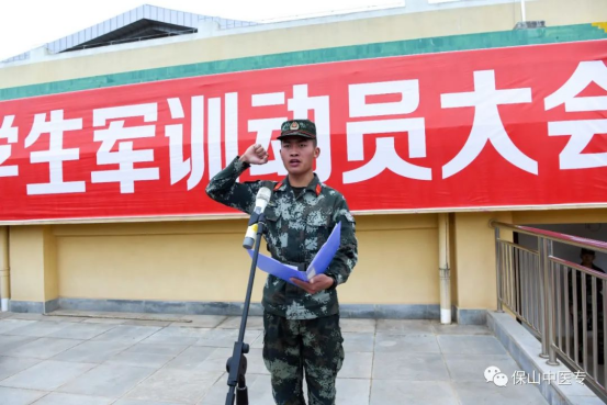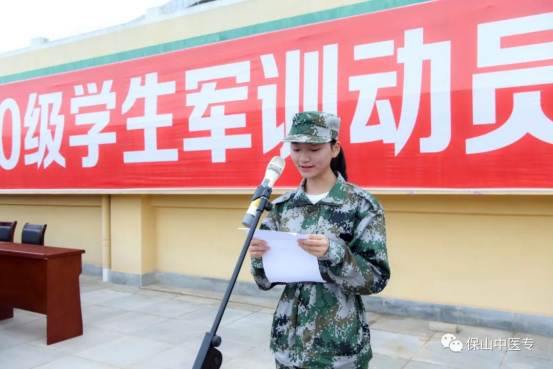 参训学生代表朱文琪发言,表示将全力以赴迎接新的挑战,以高昂的热情、饱满的精神状态投入到每一次训练中。一切行动听指挥,服从学校和部队教官的管理、指导,在训练中严格操练、令行禁止。战胜困难、战胜自我,让“流血流汗不流泪,掉皮掉肉不掉队”从口号变为现实,圆满完成规定的军训任务。