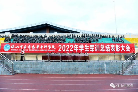 9月4日,保山中医专举行2022年学生军训总结表彰大会,为期14天的军训工作圆满落下帷幕。中国人民武装警察部队保山支队副参谋长何帅,学校党委班子成员出席表彰大会。