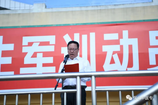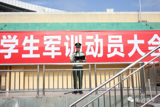 武警保山支队副参谋长何帅代表承训部队讲话,衷心希望同学们通过军训,进一步强化国防意识,时刻牢记和发扬军人作风,成为一名德才兼备的优秀人才。