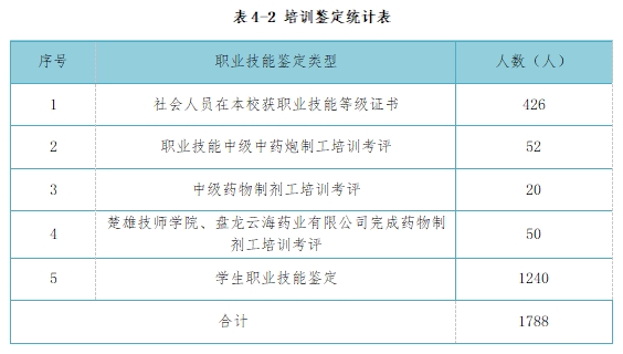 学校为国家医师资格考试实践技能考试基地;云南省第236职业技能鉴定所,鉴定工种共11个。为学校毕业生就业以及社会人员再就业能力提升提供保障,同时为学校教职工增加职业技能资格服务,推进学生“持双证”毕业和建设“双证型”教师队伍的工作进程,更好的融入到地方社会经济建设,提高公民素质,努力为学校创造良好的经济效益和社会效益。2024年为开展培训鉴定服务人次达1788人。