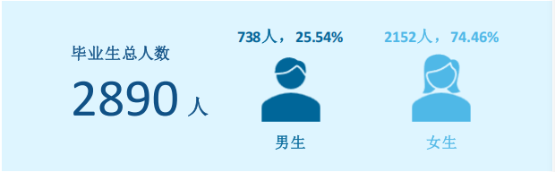 2025年,学校通过多种举措推动就业工作,就业成效得到显著提升。2025届毕业生总数为2890人,其中男生738人,占比25.54%;女生2152人,占比74.46%。