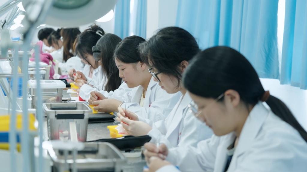立足中医药特色与职业教育规律,系统构建并深入实践“医教融合、夯实基础、校院(企)合作、铸实技能、全程实践、德能并重”的人才培养模式。不断强化实践教学,拓展“校院协同、全程覆盖”育人新平台,持续加强临床教学基地建设与管理。建成涵盖1所直属附属医院、5所非直属附属医院、30所教学医院、90所实习医院及74个实习基地在内的200个临床实践教学基地,形成了层次分明、功能互补、覆盖全面的实践教学体系。积极推动学历教育与职业能力认证的有机衔接,成功获批国家医师资格考试实践技能考试基地(临床与中医类别)和国家中医医师规范化培训实践技能考核基地,成为老年照护、母婴护理、幼儿照护、运动营养咨询与指导等8个教育部“1+X”职业技能等级证书制度试点院校,获评云南省社会培训评价组织和云南省技工院校评价机构,入选首批全国健康学校建设单位与首批全国急救教育试点学校。深度对接区域产业发展,牵头组建滇西中医药产教融合共同体和保山中医药产教联合体,聚焦大健康产业重点领域,成立养老保健现代产业学院、医康养现代产业学院、健之佳医药健康服务产业学院,实现教育链、人才链与产业链、创新链的深度融合,显著提升了人才培养的针对性和适应性。
