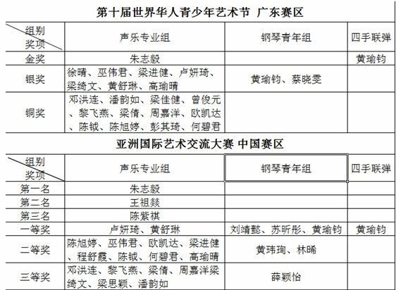 5月17、18日“第十届世界华人青少年艺术节”声乐钢琴大赛及“亚洲国际艺术交流大赛”的声乐钢琴大赛在广州举行,我院音乐系31名学子荣获佳绩。 据悉,“第十届世界华人青少年艺术节”广东赛区以及“亚洲国际艺术交流大赛”...