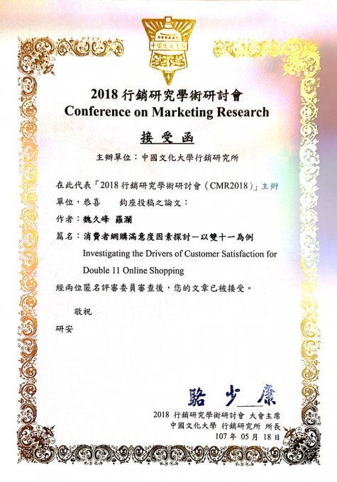 5月18日,中山大学南方学院商学院魏久峰老师带领来自商学院市场营销专业林华月、罗春花、何爱弟同学以及来自工商管理专业的唐秋怡、黄海英、罗澜六位同学,参加台湾《2018营销研究学术研讨会》(2018 Conference on Marketing ...