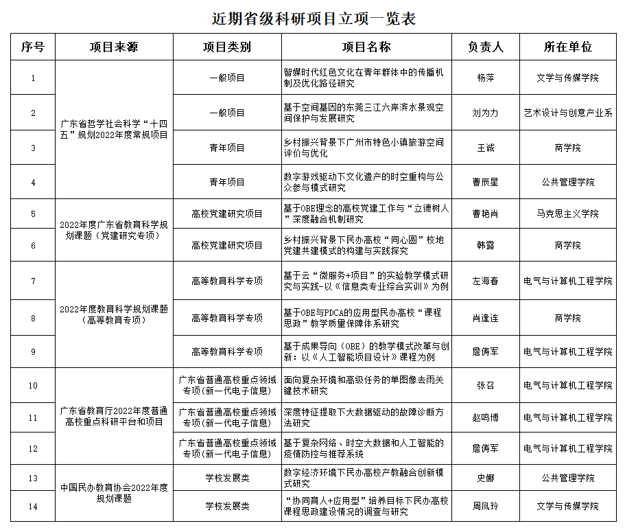 近日,一批省级、市级项目立项结果先后公布。beat365科研项目立项喜讯频传,接连获得广东省教育科学规划课题、广东省社科规划常规项目、广东省教育厅高校科研平台和科研项目、中国民办教育协会年度规划课题等多类省级科研项目立项14项。...
