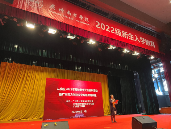 9月16日,学校在新综合楼大礼堂举办了2022级新生校园安全专题教育讲座。广州市公安局从化区分局、平安从化宣讲团宣讲警官,学校常务副校长、党委副书记唐燕,党委副书记、副校长植秀聪,保卫处、学生处、一年级工作部相关责任人及2022级新生代表参加了讲座。...