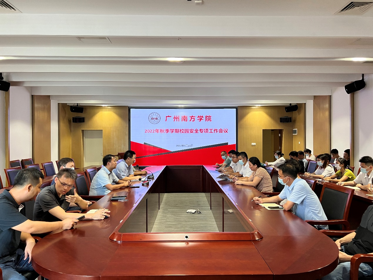 9月26日下午,学校组织召开2022年秋季学期校园安全专项工作会议。校长助理代燕飞、各相关职能部门负责人、各驻校合作单位负责人出席了会议。会议由保卫处乔华锋处长主持。 会议现场 代燕飞校长助理在会上指出,疫情防控、...