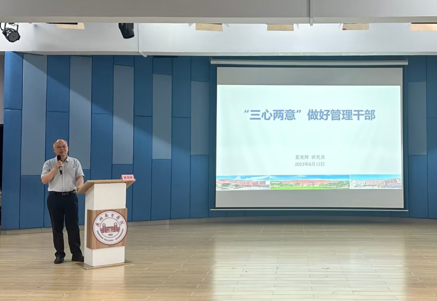 6月13日下午,学校在1教105室举行2023年管理干部培训第二讲,旨在进一步加强学校干部队伍建设,提升各级管理干部理论素养、管理能力和服务水平,高质量推进学校各项中心工作。本次培训主讲人为学校副校长夏亮辉,他以“...