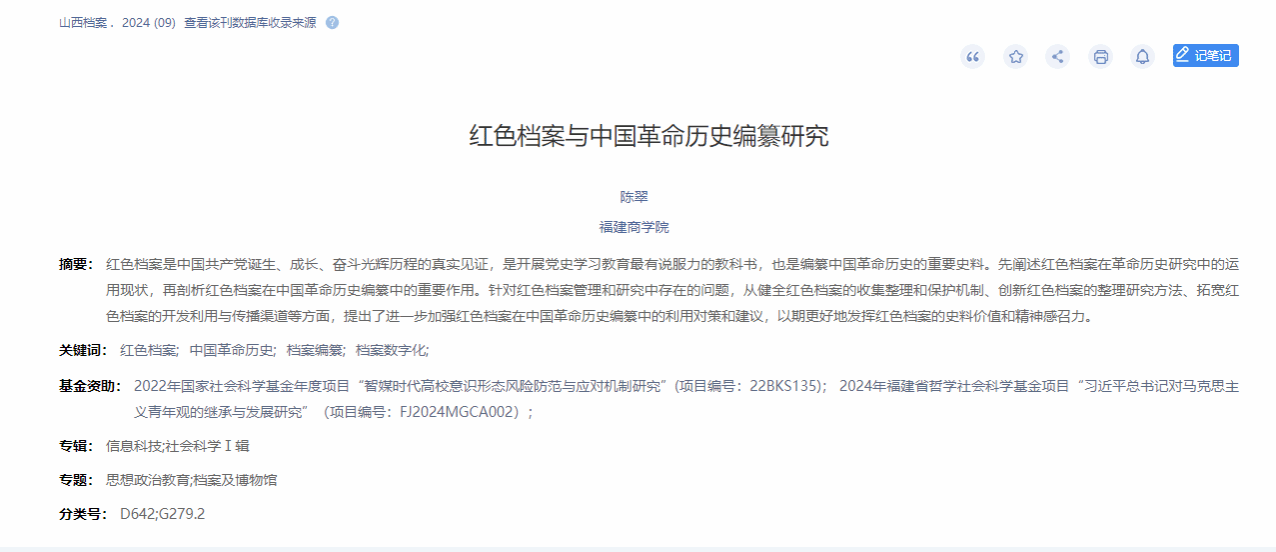 近日,beat365陈翠教师在北大核心期刊《山西档案》发表文章《红色档案与中国革命历史编纂研究》。