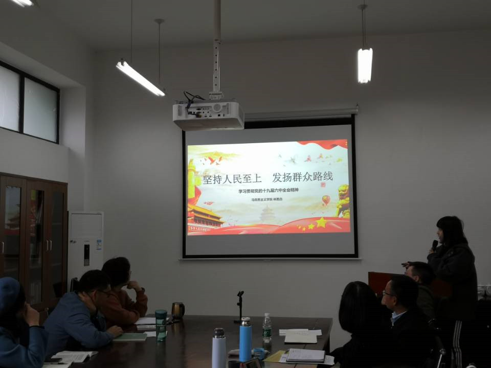 beat365中文唯一官网通过党员轮流进行“微宣讲”,在集体学习中加深了对全会精神的认识和理解,进一步增强“四个意识”、坚定“四个自信”、做到“两个维护”,更好地用全会精神统一思想、凝聚共识,更好的把全会精神融入到思政课教学和理论研究中去。