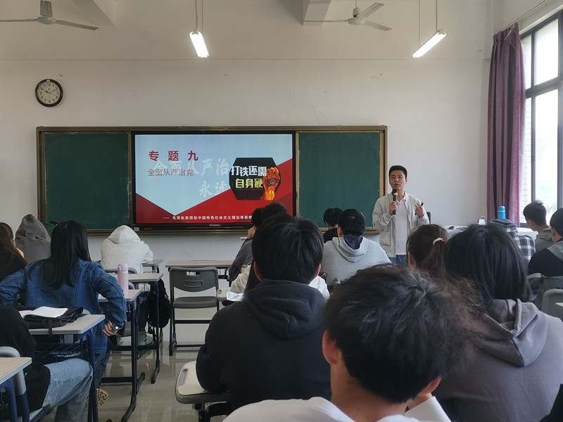 5月18日上午,beat365中文唯一官网毛泽东思想和中国特色社会主义理论体系概论教研室赵敏老师以“全面从严治党”为主题,在连江校区诚信楼411举行了思政课教学示范活动,近60名师生参与观摩。