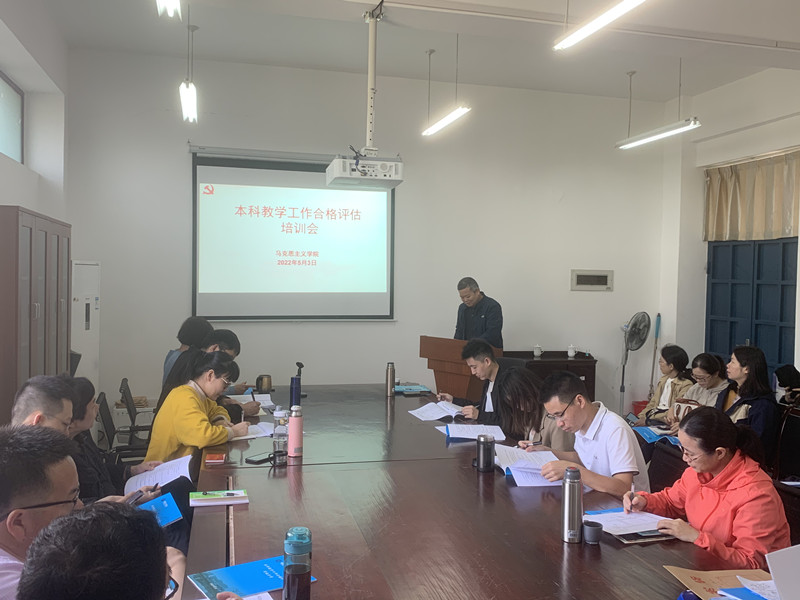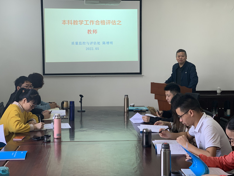 为做好本科教学工作合格评估自评自建工作, 5月3日上午校质量监控与评估处陈增明处长到beat365中文唯一官网开展合格评估专项培训。beat365中文唯一官网全体教师参加。