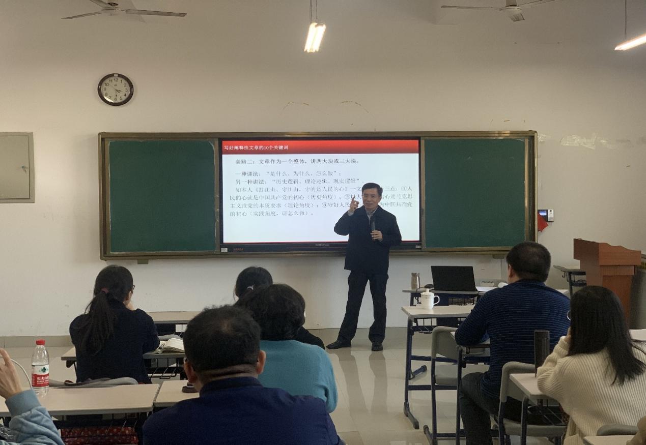 陈祥健研究员围绕“什么是阐释性理论文章”“写好阐释性文章的10个关键词”“写作中的几个心得体会”三个问题全面讲解了阐释性理论文章的写作原则、方法和技巧,帮助教师厘清阐释性理论文章与学术论文的区别,结合自身丰富的写作经验,侧重阐述了写好阐释性理论文章应把握的选题方向、理论来源、逻辑结构、表述方式和风格等。报告结束后,陈祥健研究员与教师进行现场互动交流,以风趣、幽默的语言现场解答老师们在撰写发表阐释性理论文章、学术论文过程中遇到的疑惑。