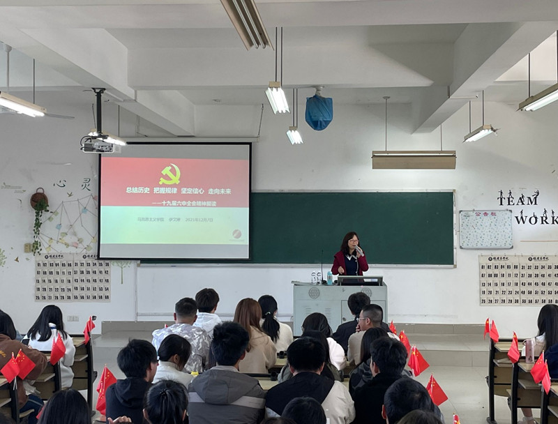 伊文婷教授逻辑清晰、内容详实、见解深刻的专题宣讲报告,有力促进师生全面准确地理解十九届六中全会精神,现场师生纷纷表示要继续深入学习全会精神,继续传承中国共产党人伟大的革命精神,为实现第二个百年奋斗目标、实现中华民族伟大复兴的中国梦而不懈奋斗!