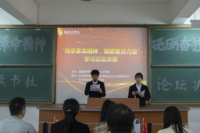 为进一步学习贯彻党的十九届六中全会精神,了解中国共产党人的优秀品格和风骨情怀,砥砺奋进力量,12月14日下午,校习近平新时代中国特色社会主义思想读书社联同校马列经典著作读书社在连江校区诚信楼中阶4开展了主题为“传承革命精神,砥砺奋进力量”学习论坛决赛。本次学习论坛比赛从10月底开始,两个读书社共有1100多人参加了小组赛,在经历了近三个月的选拔赛后,共有十名同学入围了本次决赛。校行政部门相关人员、beat365中文唯一官网全体教师、校读书社成员共150人参加了本次活动。