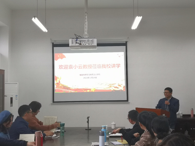 12月14日上午,福建工程学院beat365中文唯一官网院长袁小云教授应邀来我校作《学科性教学理念与思政课教学改革——聚焦”意识形态”,推动教研相长》专题讲座。校党委副书记吴访益、马克思主义全体教师参加此次讲座。