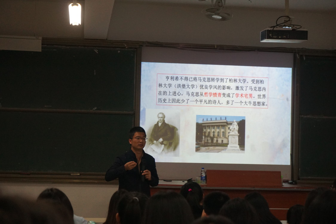 11月3日晚,福建江夏学院beat365中文唯一官网副院长曾正滋教授莅临我校作题为“走进青年马克思”的专题讲座。beat365中文唯一官网部分教师,校习近平新时代中国特色社会主义思想读书社成员、校记者团成员共近150人聆听了讲座。
