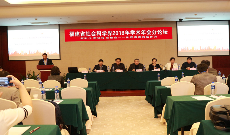 福建省社会科学界2018年学术年会分论坛暨2018年福建省伦理学年会于11月23日-25日在厦门隆重举行。本次论坛的召开,恰逢我国改革开放40周年,是党的十九大后的开局之年,也是中国特色社会主义进入新时代,踏上新征程的关键时期。论坛的目的在于深入贯彻党的十九大精神,深刻领会习近平新时代中国特色社会主义思想,促进新时代道德建设理论与实践的发展,提高社会道德水平。论坛的主题为“新时代新征程新使命——伦理道德的新作为”,80多位省内外伦理学理论研究者和实践工作者、研究生参与了本次论坛。中国伦理学会常务副会长、中国社会科学院哲学所孙春晨研究员作为特邀嘉宾出席本次论坛。