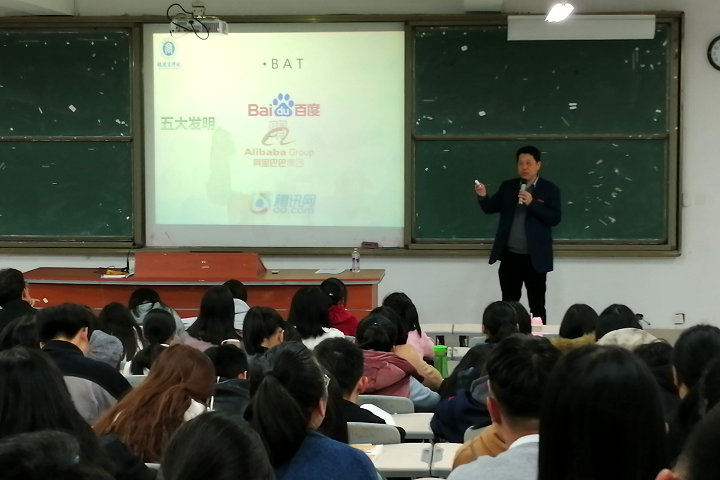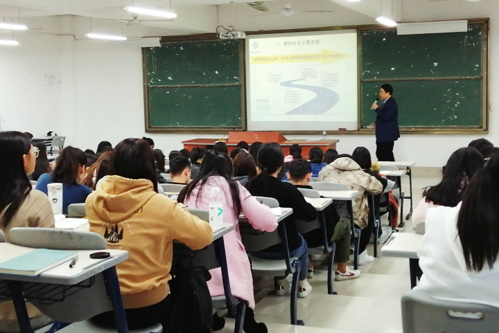 12月19日下午,黄斌校长走进思政课堂,为18级会计专业学生和部分入党积极分子作“习近平新时代中国特色社会主义思想是我们党必须长期坚持的指导思想”的专题讲座。