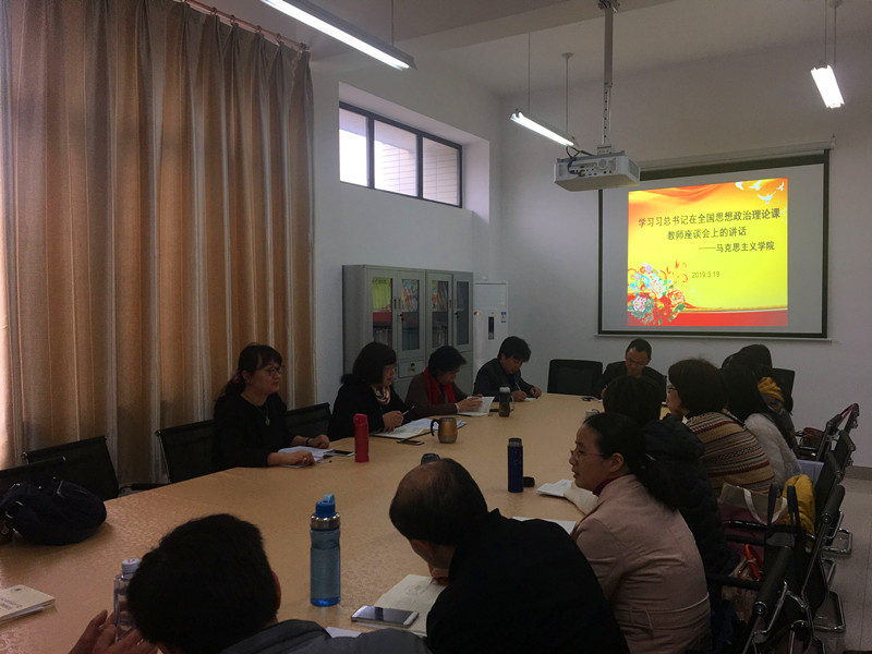 beat365中文唯一官网于3月19日下午召集学院全体专职教师进行座谈,学习习近平总书记重要讲话精神,交流体会,畅谈感想。马院林萍副院长指出,党中央历来高度重视思想政治工作,特别是党的十八大以来,以习近平同志为核心的党中央高度重视思想政治理论课建设,作出一系列重大决策部署,对高校beat365中文唯一官网和思想政治理论课教师寄予厚望。习近平总书记在新时代背景下专门主持召开如此高规格的学校思政课教师座谈会,充分体现了党中央对思政课建设的高度重视和对思政课教师队伍的亲切关怀。思政课是培养社会主义建设者和接班人的主渠道,关系到培养什么人、怎样培养人、为谁培养人的根本任务,是一门关键课程,对于其重要性一定要深刻认识到位。习近平总书记对思政课教师提出的“六点要求”和讲好思政课的“八个统一”,对办好思想政治理论课具有重要的指导意义。我们要按照习近平总书记提出的要求,发挥积极性、主动性、创造性,不断提高政治站位,砥砺高尚品格,练就深厚功底,赢得学生的尊重和喜爱。