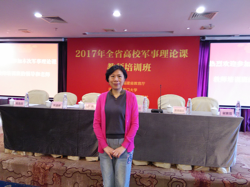 5月10-12日陈用芳教师参加了由省教育厅主办、厦门大学承办的2017年省高校军事理论课培训班,在为期两天的培训时间里,厦门大学军事理论教研室谢素蓉副教授对中国周边安全环境的精彩讲解、厦门大学台湾研究院刘国深教授对当今台海局势的深入分析、石家庄陆军指挥学院王建华教授对近期国际热点的战略解读,在我们面前展示了一幅幅国际局势的图案,使我们对我国的战略安全环境有了实际的理解,促进了教学水平的提高与教学质量的提升。会议期间,教师们还对军事理论课存在的一些现实问题向省调研员做了反映。