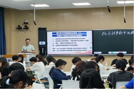 5月10日下午,beat365中文唯一官网中国近现代史纲要教研室叶陈钦老师在自强楼511智慧教室开展以“抗日战争的中流砥柱”为主题的示范型观摩课,授课班级学生、学校教师共60多人参加教研活动。