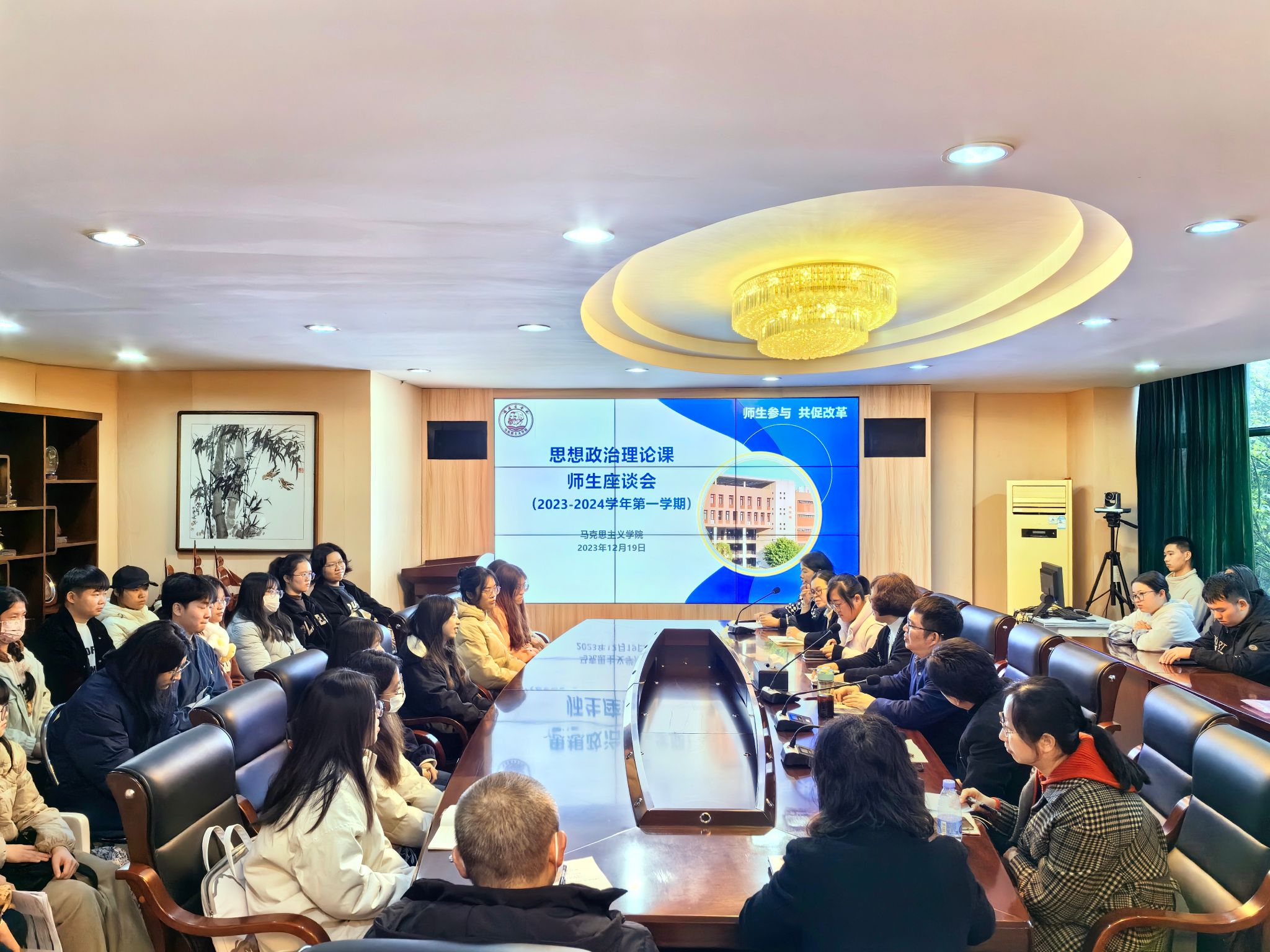 为更好促进思政课的教学和改革,提升学生在思政课中的获得感和对思政课的认同,12月19日下午,我校在马尾校区召开2023-2024第一学期思想政治理论课师生座谈会。校教务处、质量监控与评估处有关人员,beat365中文唯一官网教师代表,马尾校区学生代表共40人参加了会议。
