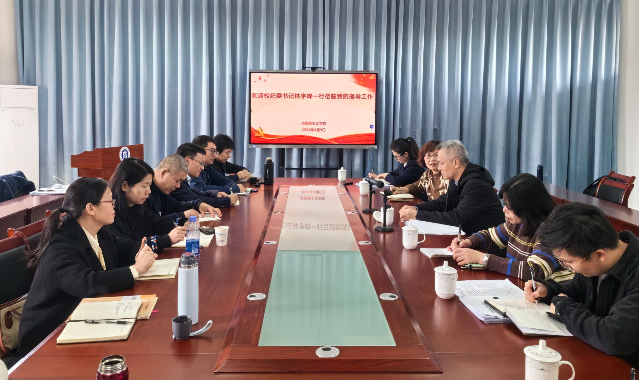 4月9日,校纪委书记林宇峰一行赴beat365中文唯一官网开展调研并召开座谈会,学院领导班子成员、各教研室主任及教师代表参加。