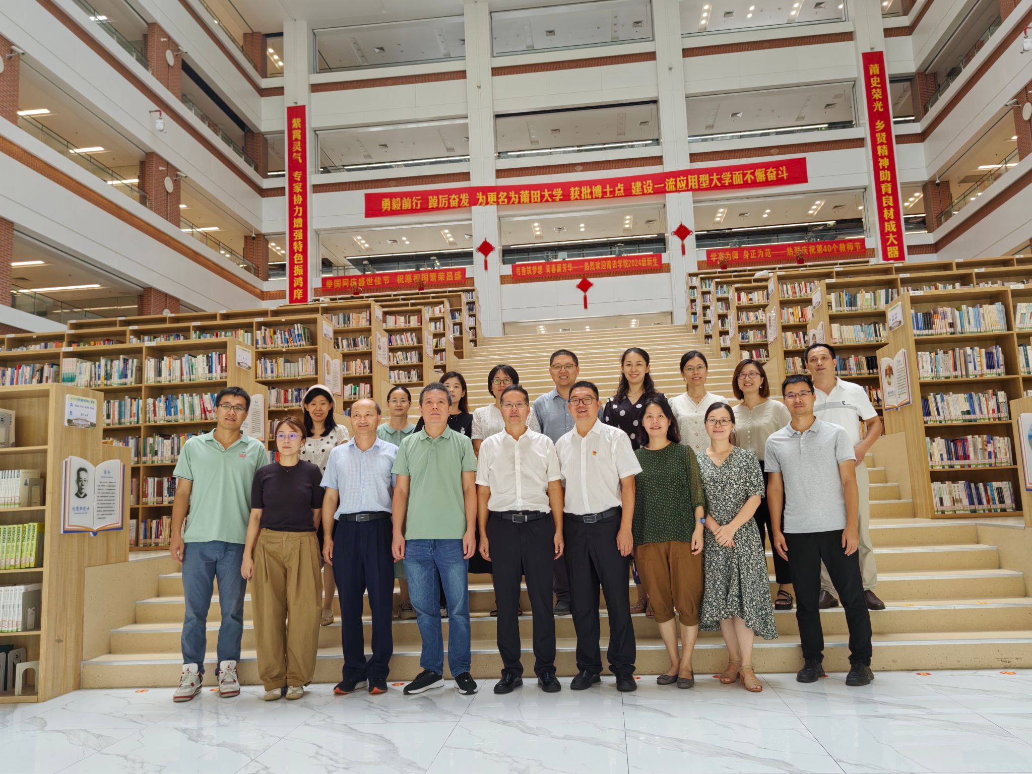 本次调研,受到莆田学院beat365中文唯一官网的热情接待。学院教师参观了莆田学院紫霄校区图书馆、校史馆、马院图书资料室。随后,在座谈会中,莆田学院马院院长俞国锋对beat365教师一行来访表示欢迎,并介绍了莆田学院马院近年来在教学改革、科学研究、社会服务、人才引进、硕士点申报及建设等经验与做法。副院长陈培涵、教研室主任及专任教师就如何更好地学习贯彻宣传党的二十届三中全会精神、思政课教学改革创新、社会实践安排等方面进行说明。双方教师就相关问题进行深入交流、积极讨论。下午,教师一行赴莆田木兰溪治理展示馆参观学习。