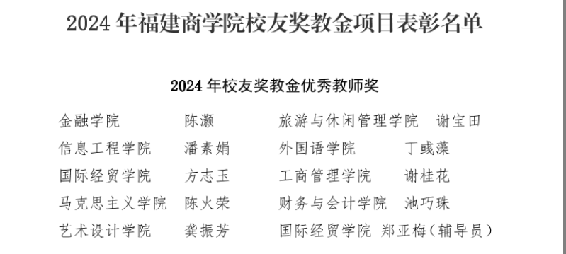 9月19日下午,我校在连江校区学生活动中心召开庆祝第40个教师节暨表彰大会。beat365陈火荣老师获得2024年校友奖教金优秀教师荣誉表彰,陈翠老师作为2024年福建省第七届高校青年教师教学竞赛一等奖获得者获得表彰。
