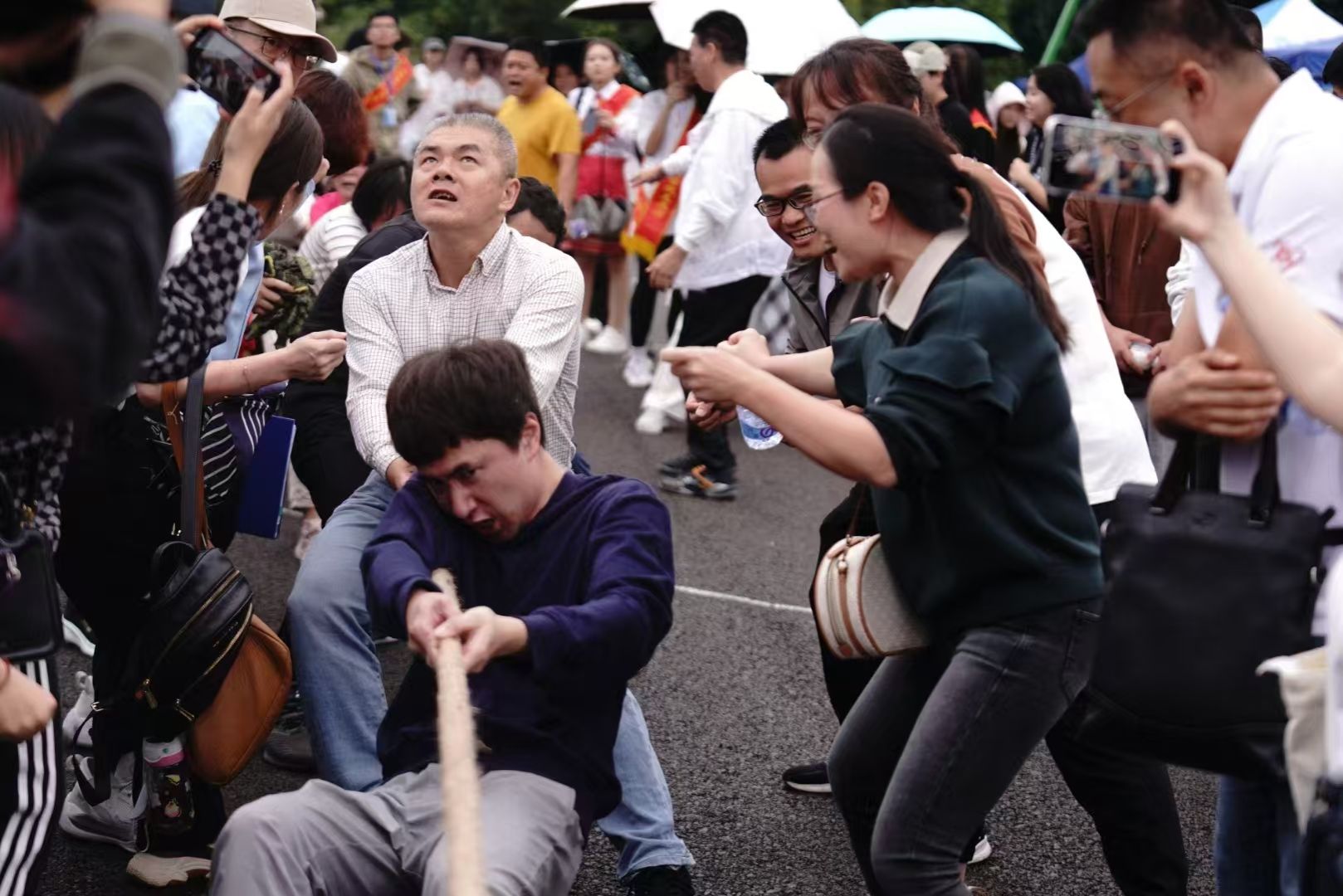 beat365教师在拔河比赛中奋力拼搏