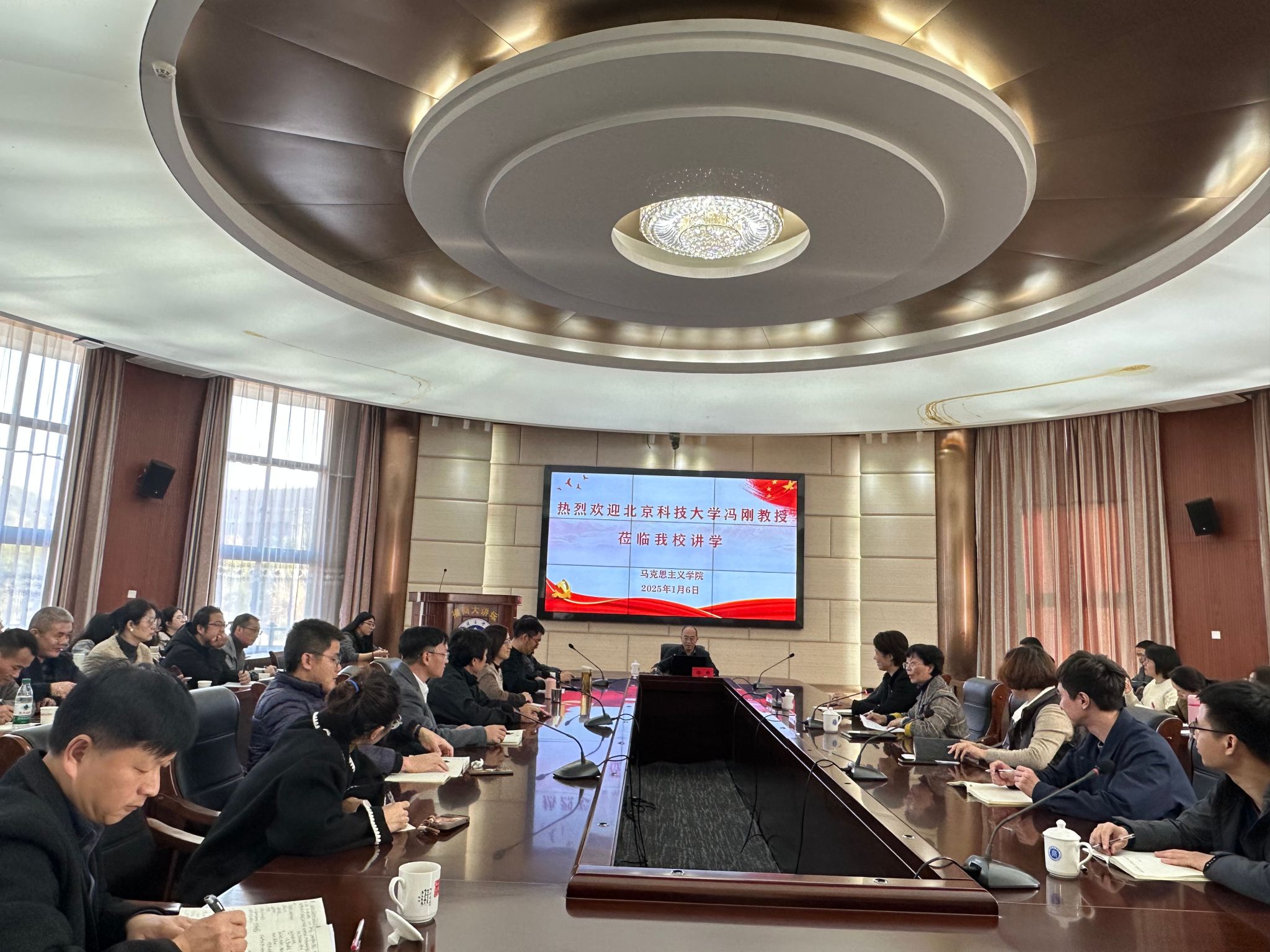 1月6日下午,北京科技大学思想政治工作研究院院长、原教育部思政司司长冯刚教授应邀来我校作题为《文化现代化视域下的思想政治教育创新发展》的学术讲座。校长程灵、副校长林文艺、beat365中文唯一官网全体教师、学工处、团委及辅导员共80多人参加了此次讲座。