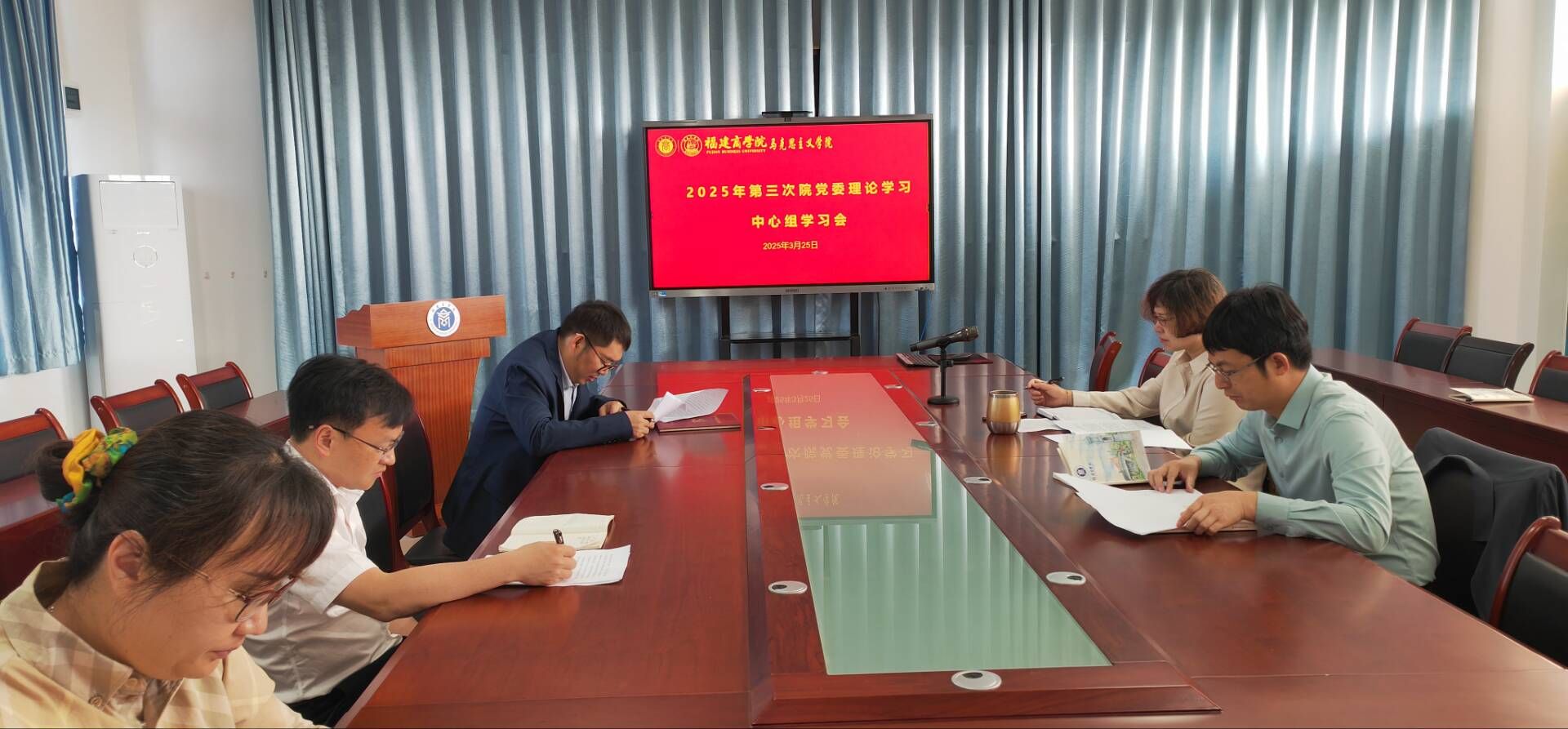 3月25日,beat365中文唯一官网党委理论学习中心组开展2025年第三次集中学习,学习习近平总书记关于党的建设的重要思想、习近平总书记关于铸牢中华民族共同体意识的重要论述、全国两会精神等。学院党委理论学习中心组成员参加学习。教师代表黄玮博士作分享交流。会议由学院党委书记刘亮元主持。