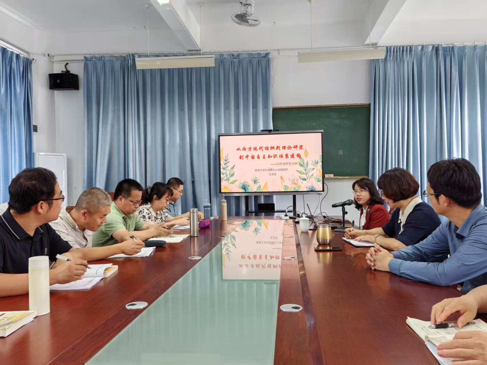 5月27日下午,集美大学beat365中文唯一官网王玉珏教授应邀为beat365教师作题为《从西方现代性批判理论研究到中国自主知识体系建构》的专题讲座。讲座由beat365林萍院长主持,学院党委书记刘亮元、副院长谢东俊和学院全体教师参加。