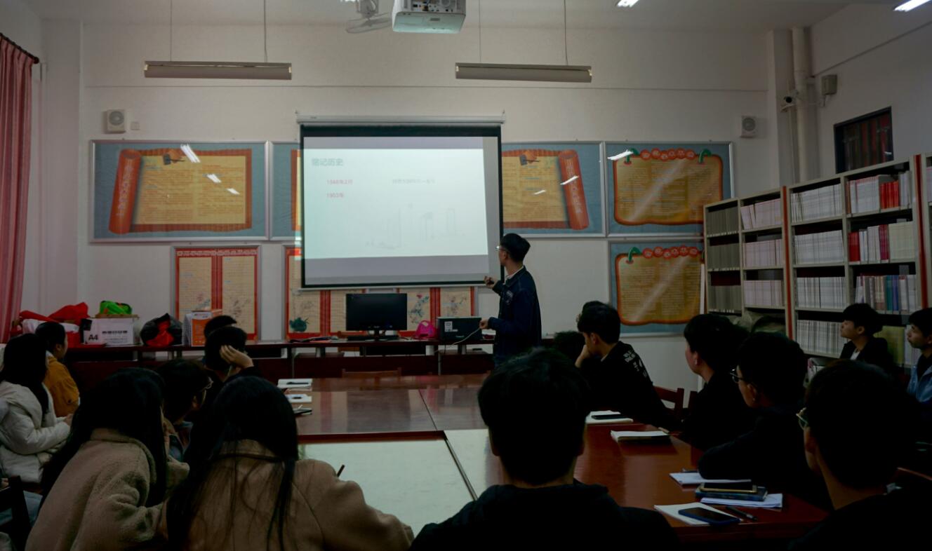 1月11日下午,福建商学院习近平新时代中国特色社会主义思想读书社于连江校区自强楼活动室开展了本学期第八场大学生小分队宣讲活动暨读书社2018-2019学年第一学期期末工作总结会。本次宣讲由读书社社长金顺源为我社全体干部干事近40名同学进行宣讲。