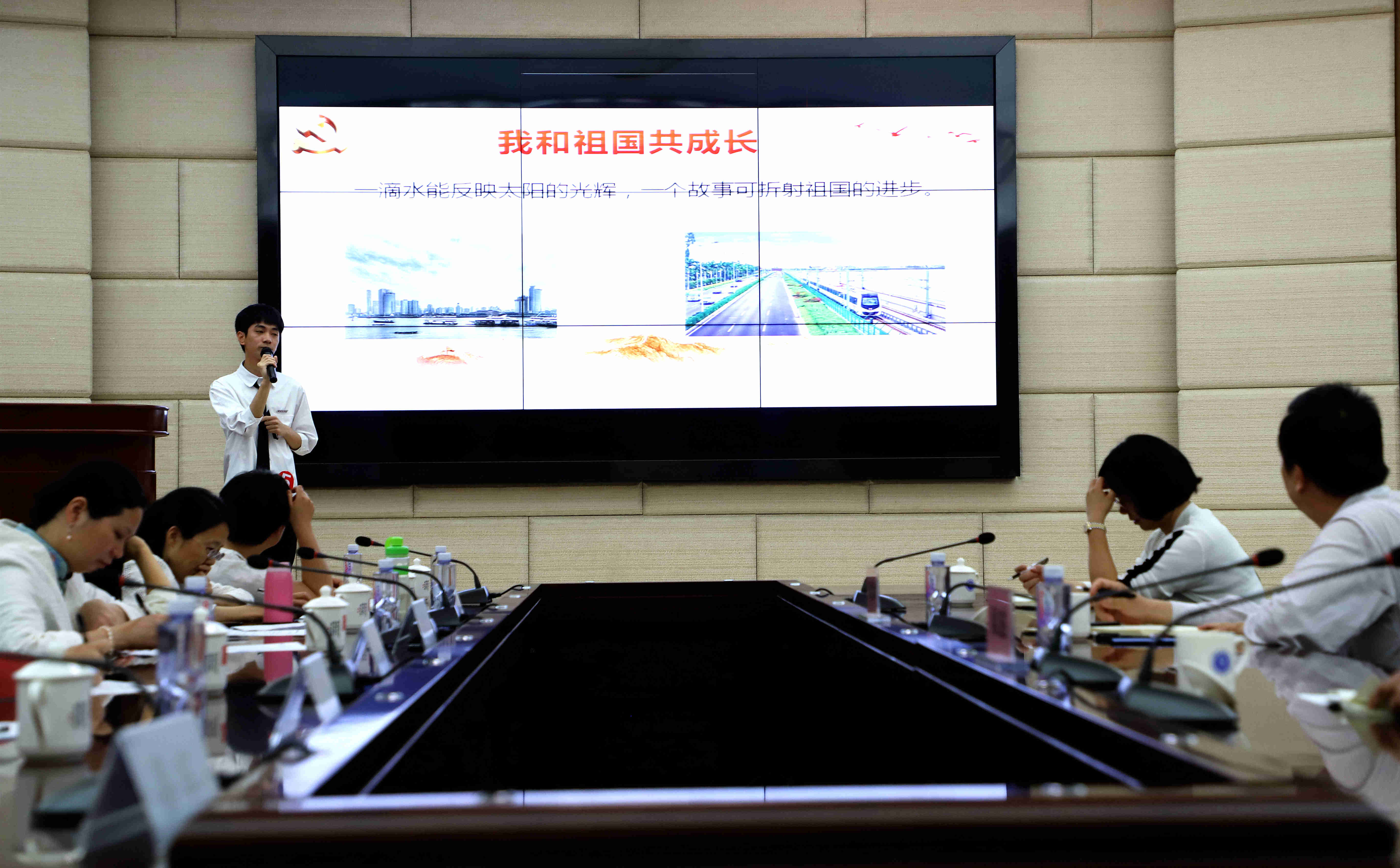 5月21日下午,我校习近平新时代中国特色社会主义思想读书社,在连江校区明德楼视频会议室举办“我与祖国共成长”五月学习论坛总决赛。校党委书记刘剑津,副书记吴访益,beat365中文唯一官网全体教师,读书社学生代表等近100人参加了此次活动。