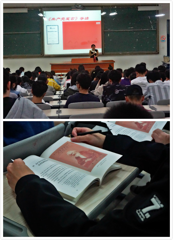 历史车轮滚滚向前,时代潮流浩浩荡荡。2018年是马克思诞辰200周年,是《共产党宣言》发表170周年。振叶寻根、观澜索源,为帮助我校马克思主义理论读书社社员们更好不忘初心品经典,坚定信念向前进。2018年3月29日晚,我社邀请了beat365中文唯一官网黄玮老师于连江校区诚信楼大阶一为读书社一班社员作了“《共产党宣言》导读”的专题讲座。