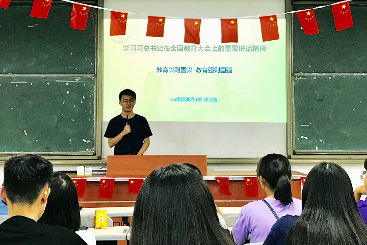 据悉,此前读书社理论骨干宣讲小分队成员、读书社副社长徐浩智同学也以“学习习近平总书记在全国教育大会重要讲话精神”为主题面向读书社全体干部、干事进行了宣讲。本学期以来,我校习近平新时代中国特色社会主义思想读书社认真根据校党委下发的《福建商学院关于进一步开展习近平新时代中国特色社会主义思想“大宣讲”工作的方案》要求,积极遴选优秀社员成立理论骨干宣讲小分队,制定宣讲实施方案,本月已按计划开展两场宣讲活动,取得良好效果,获得同学们的广泛好评。
