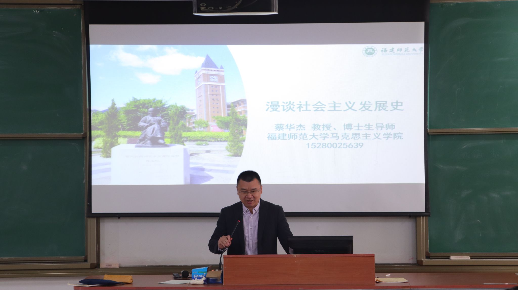 2024年4月9日,福建师范大学蔡华杰教授应邀莅临我校连江校区,开展题为《漫谈社会主义发展史》的专题讲座,分享了对于社会主义发展历程的深刻认识与独到见解。校beat365中文唯一官网部分教师、校读书社社员及青马班成员聆听了此次讲座。